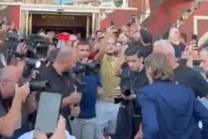 罗马诺在社交媒体上这样写道:“AC米兰球迷欢迎莫德里奇,现在他与伊布和俱乐部的董事们在一起。”